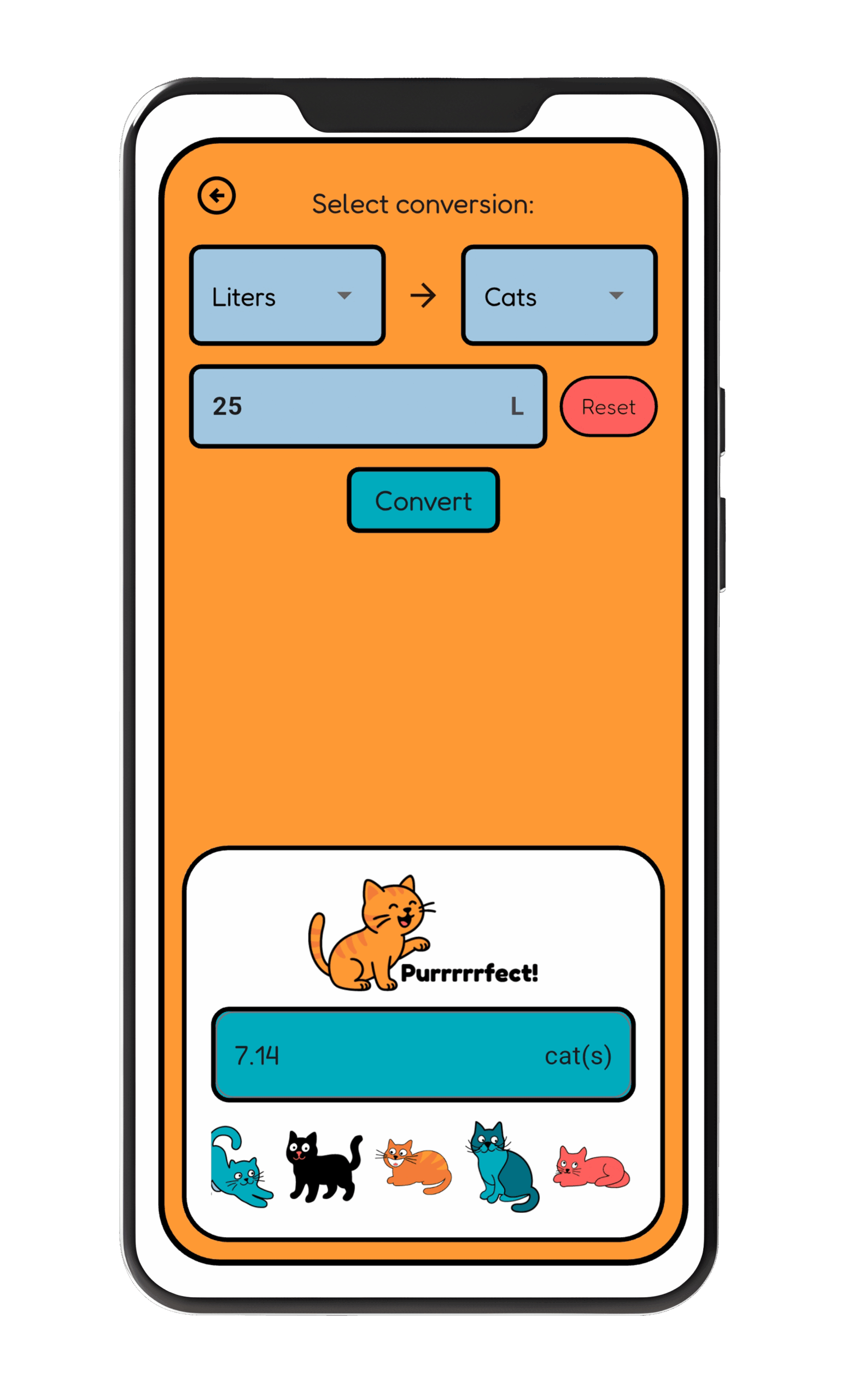 Purrfect Converter is a fun, functional, and easy-to-use unit converter for everyday measurements — and yes, you can even measure in cats!