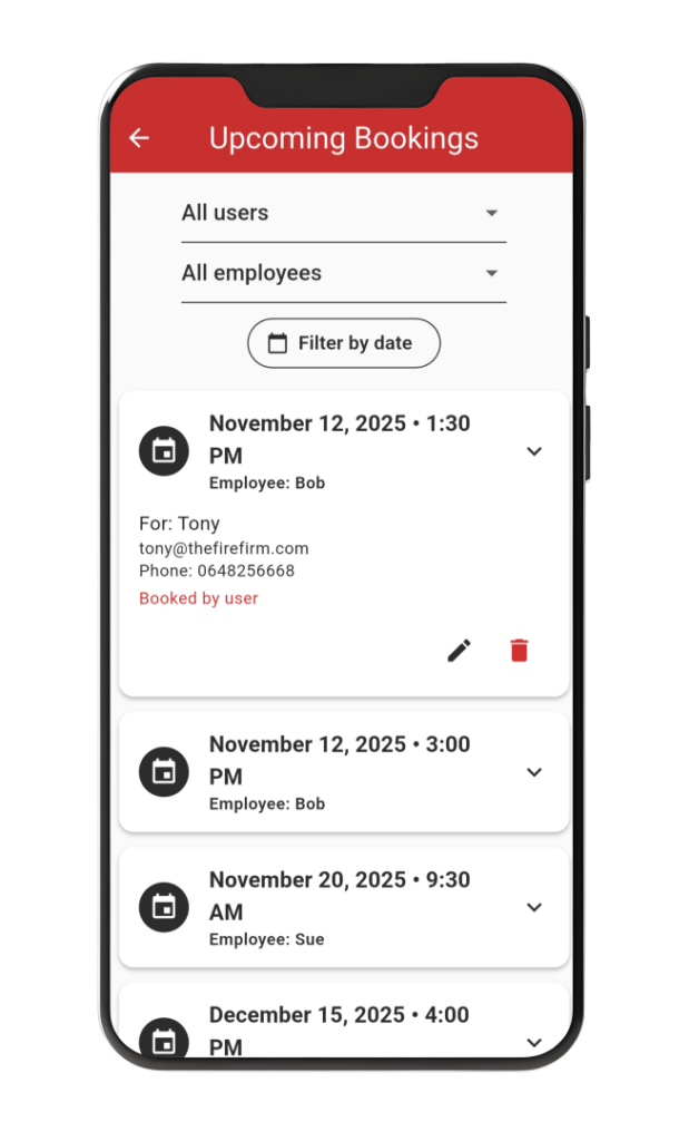 - View and manage upcoming bookings