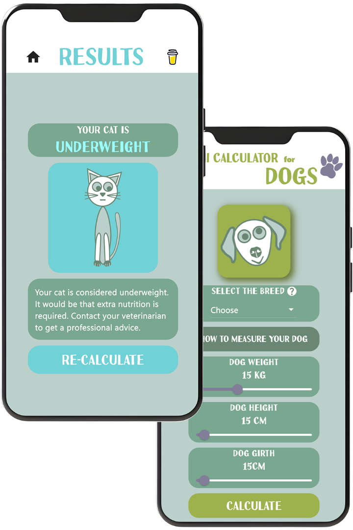 Use this app to check if your dog is overweight or your cat is in ideal condition. The Pet BMI Calculator is a great companion for tracking pet health and weight over time.